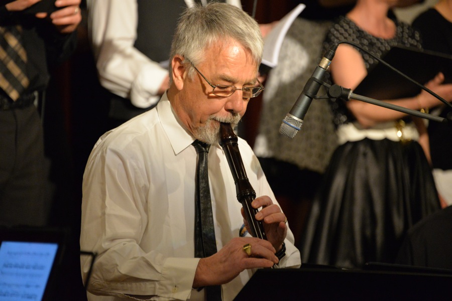 Unsere Chorleitert, Livio Castioni, eröffnet das grosse Konzert mit Mundharmonika zu "Love Me Do"